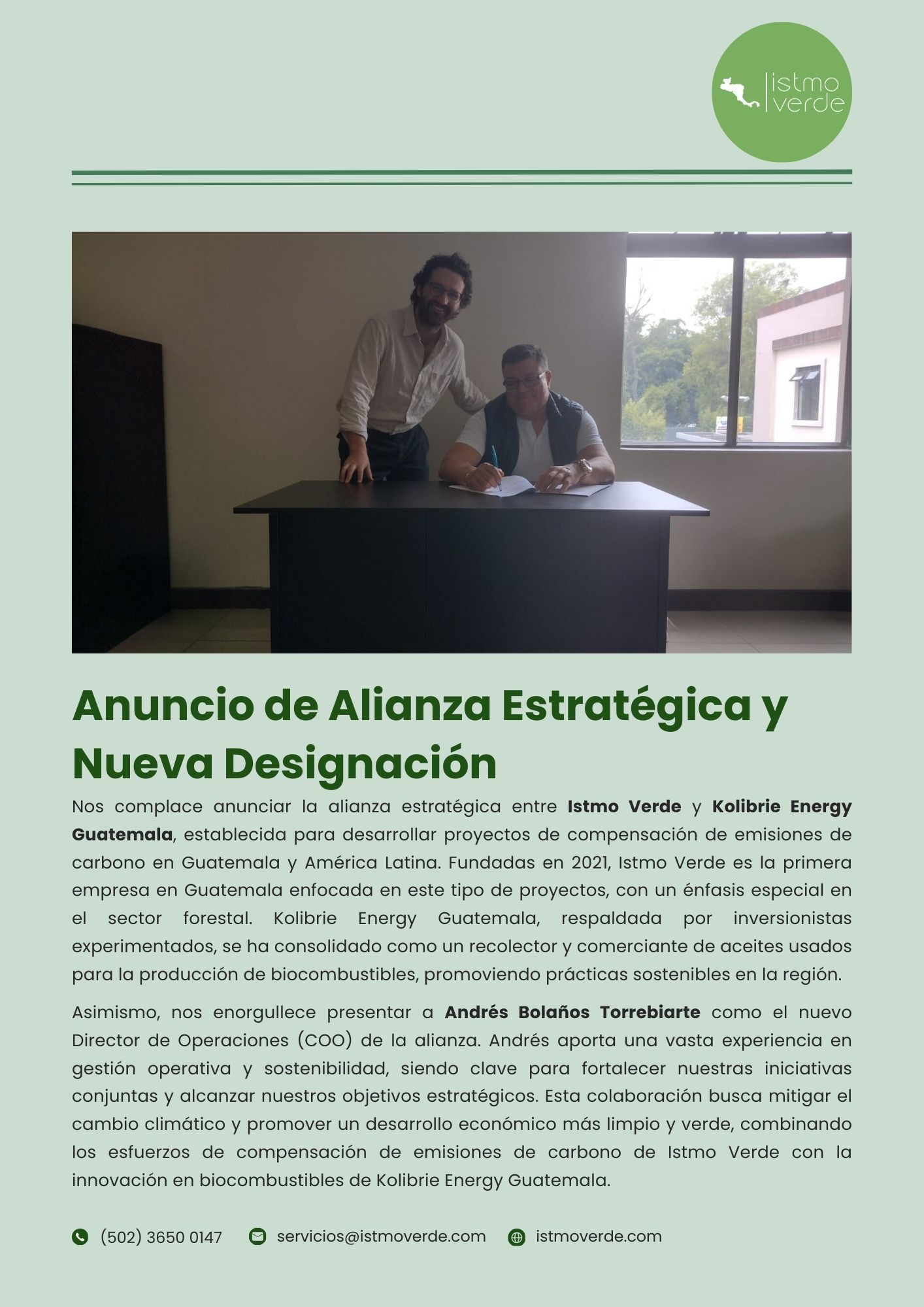 Istmo Verde, S.A. se establece en el año 2021 bajo las leyes de la República de Guatemala como la PRIMERA EMPRESA desarrolladora de proyectos de compensación de emisiones de carbono en el país con énfasis en el sector forestal.